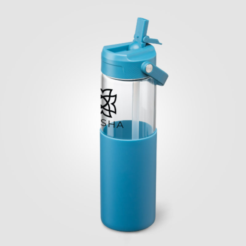 The 590 ml (20 oz) bottle is designed for user comfort and convenience, featuring a lid with an integrated straw that includes a protective cover to keep the straw clean and hygienic.