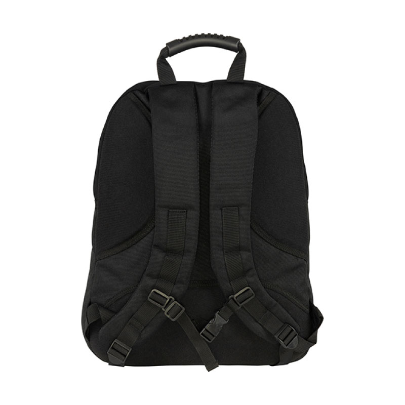 Includes zipped front and main compartments with padded section for storing device, organiser section in front zipped pocket, zipped side pocket for drinks bottles, adjustable padded shoulder straps and curved rubberized handle.