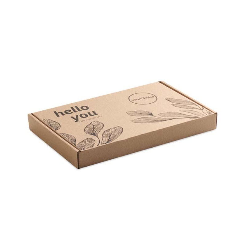 You can also add your logo on the gift box, 1 colour or the whole box full colour, or choose for a personalised sticker.