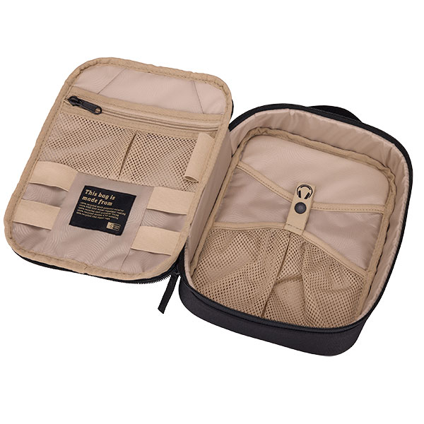 Case Logic Invigo recycled accessory bag. Made from 100% recycled 600D polyester. 150D polyester lining. Zipped closure. Features pen pocket, zip pocket, slip pocket, and storage compartments.