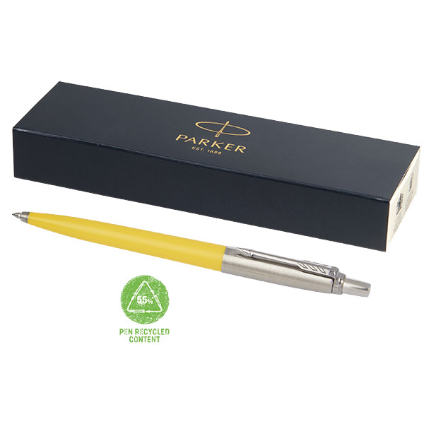 The Parker Jotter Recycled ballpoint pen offers sustainability, style and performance. Its scratch-free recycled plastic body combines elegance with durability. Including Parker Quinkflowandreg; refill for a smooth writing experience lasting 3500-5500 metres.