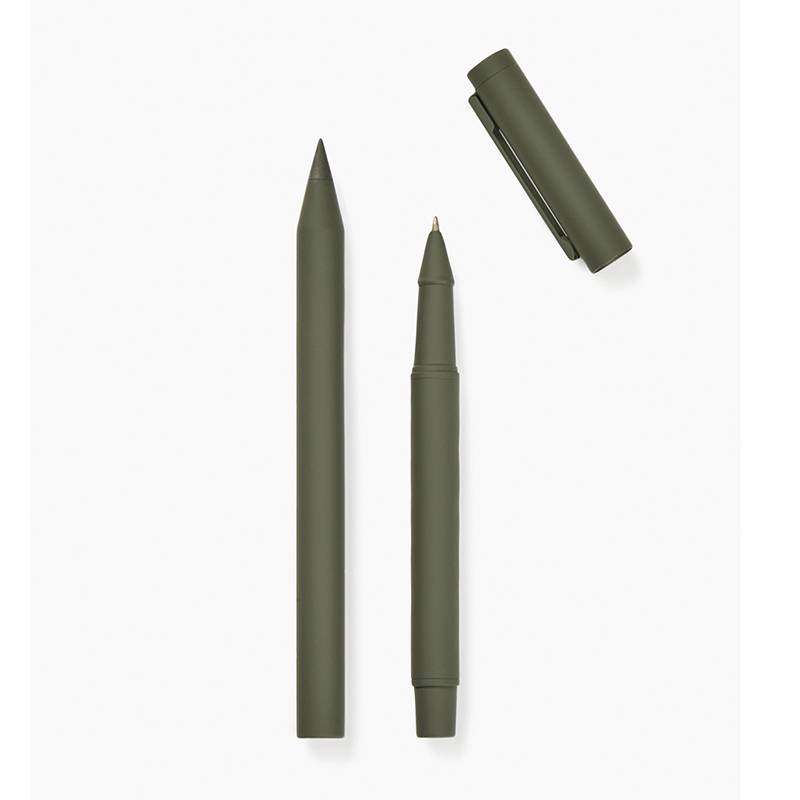 This modern and sleek set includes two pens: an eternal pen and a classic ballpoint pen with a cap and clip. Designed for both style and functionality, these pens are crafted from RCS certified recycled stainless steel, featuring a rubber surface coating for a comfortable grip and a matt finish. Both pens have a balanced weight that ensures stability and effortless writing. The eternal pen offers limitless writing. The ballpoint pen features a fine 1.00 mm tip and provides smooth, consistent writing with documental blue ink, lasting up to 1200 metres. Certified by RCS (Recycled Claim Standard), RCS certification guarantees that the entire supply chain of recycled materials is certified. The total recycled content is based on the overall product weight. This product contains 52% RCS certified recycled aluminum and 10% RCS certified stainless steel