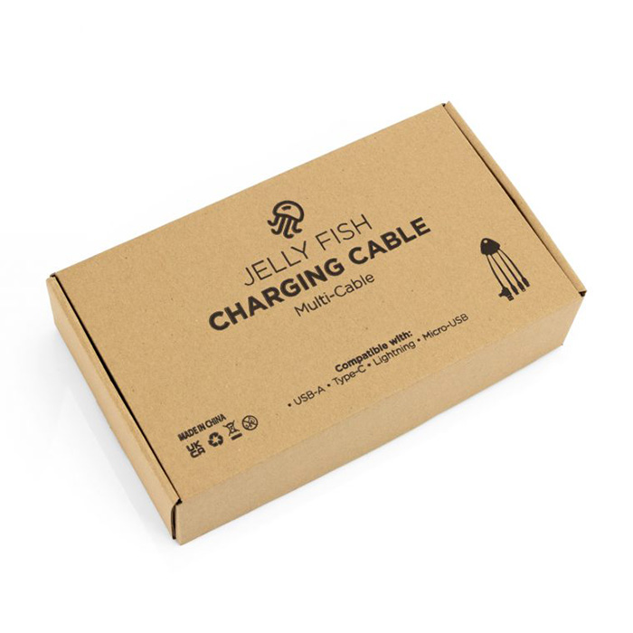 No matter the device, the ECO Jellyfish charger will keep you charging! Featuring Type-C, Lightning and Micro-USB connectors, you will be able to charge a wide range of devices- simply plug into a certified charger or computer to start charging your devices. Each of the Jellyfishandrsquo;s cable arms are between 88 andndash; 92mm, with the USB and Type-C arm being 1 metre long. The 1 Metre long cable arm will come coiled up with a twist tie to ensure it is kept compact for shipment and transport.