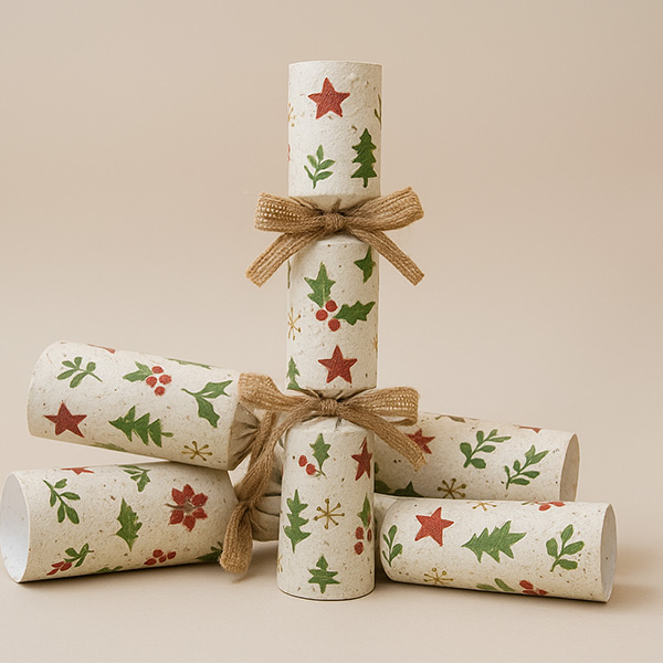 300gsm UK-Native wildflower seed paper Christmas crackers. Seed paper includes poppy, daisies and myosotis seeds.