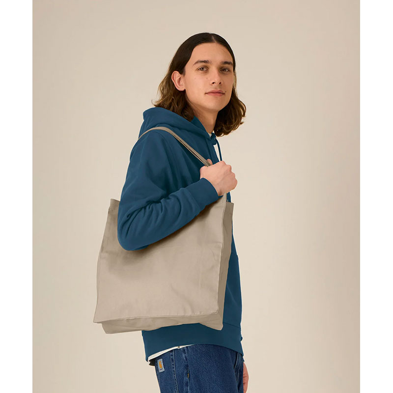 This stylish midweight woven tote bag, with reinforced handles and an inside pocket, boasts a spacious design. Made from 100% recycled cotton for everyday essentials.
