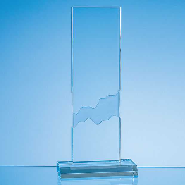 The 28cm Optical Crystal Deep Etched Mounted Rectangle Award commands attention with its stylish appearance featuring a frosted design on the reverse side of the upper part of the award. Meticulously hand crafted from the finest quality optical crystal the award captures the essence of success and embodies accomplishment. There is a generous engraving area that can be personalised with any crest, logo or wording to create an award that is sure to be treasured by the recipient.