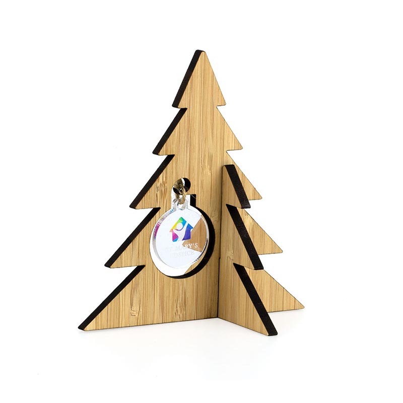 5mm thick bamboo flatpack Xmas tree with clear Greencast acrylic disc bauble