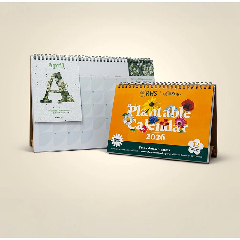 A4 desk calendar with a different A6 seed paper insert for each month. Kraft board tent card and wirobound.