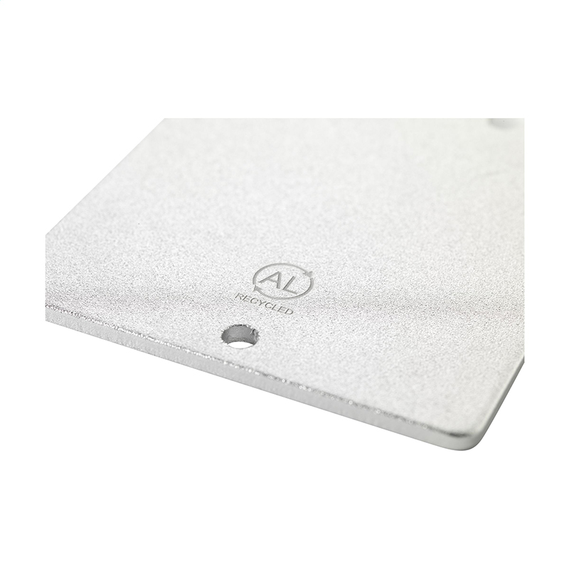 Bottle opener made from 100% recycled aluminium. This bottle opener is the size of a credit card and is easy to attach to a key ring. GRS-certified. Aluminium can be recycled an infinite number of times whilst retaining the quality of the material. By using recycled aluminium, fewer new raw materials are used during the production of this product. This means less energy consumption and less use of water.