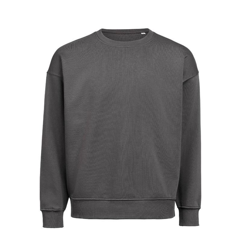 This unisex sweatshirt offers a cool fit, crafted from a blend of 80% organic cotton and 20% recycled polyester.