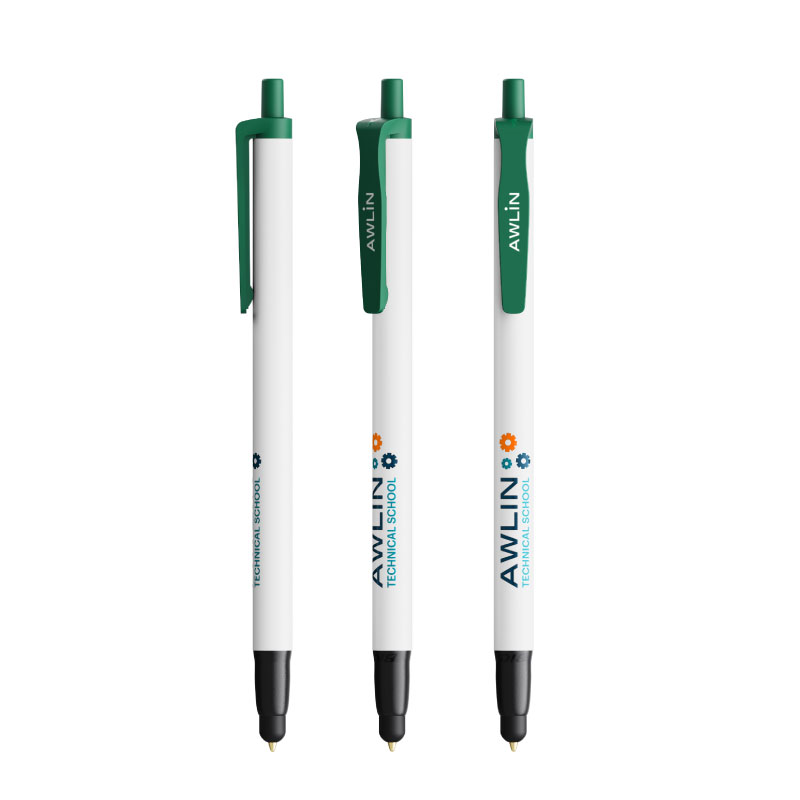 Promote your brand sustainably with the BIC Clic Stic Ecolutions Stylus, a promotional pen designed for both writing and touchscreen use. This versatile ballpen features a smooth writing tip and a responsive stylus, combining practicality with environmental responsibility.