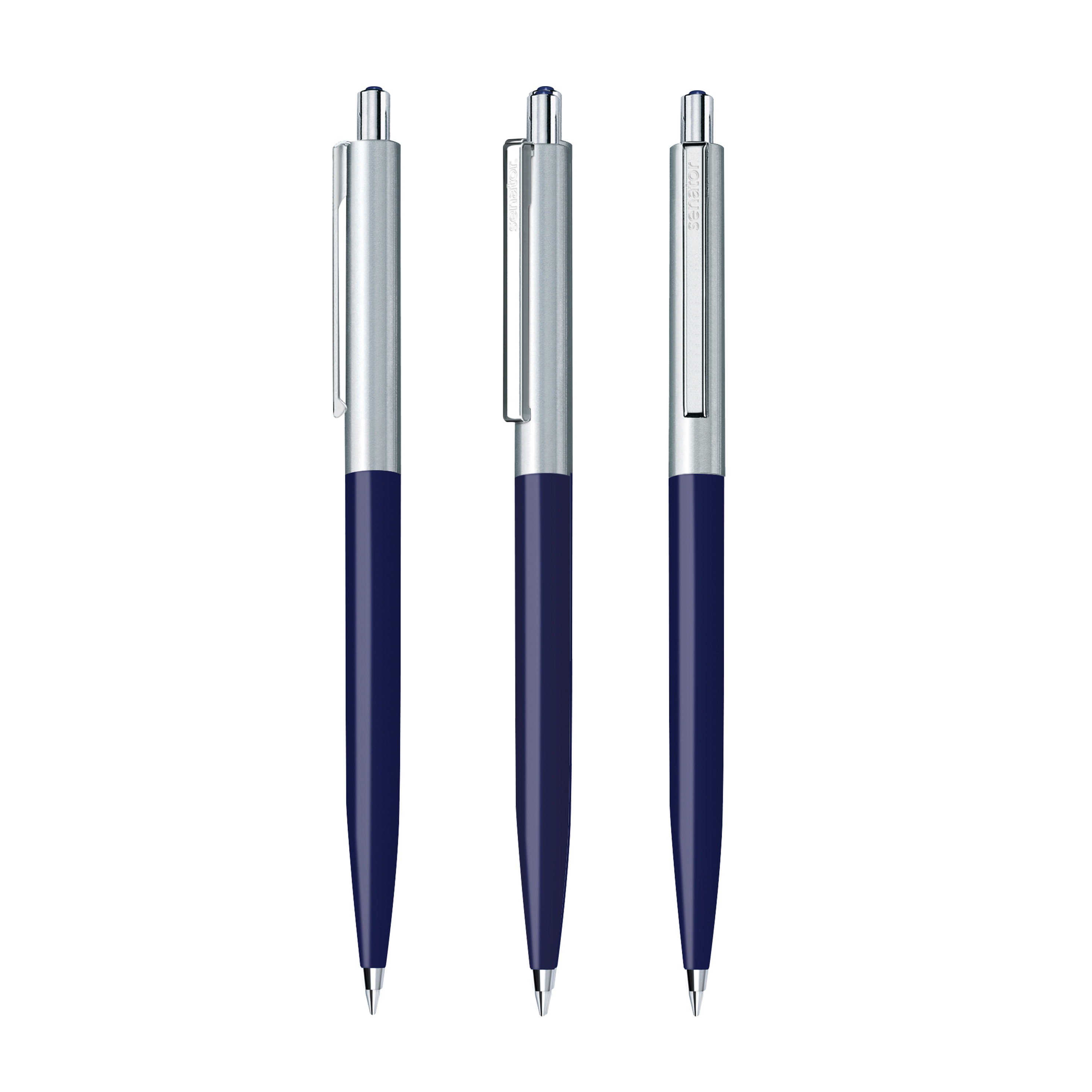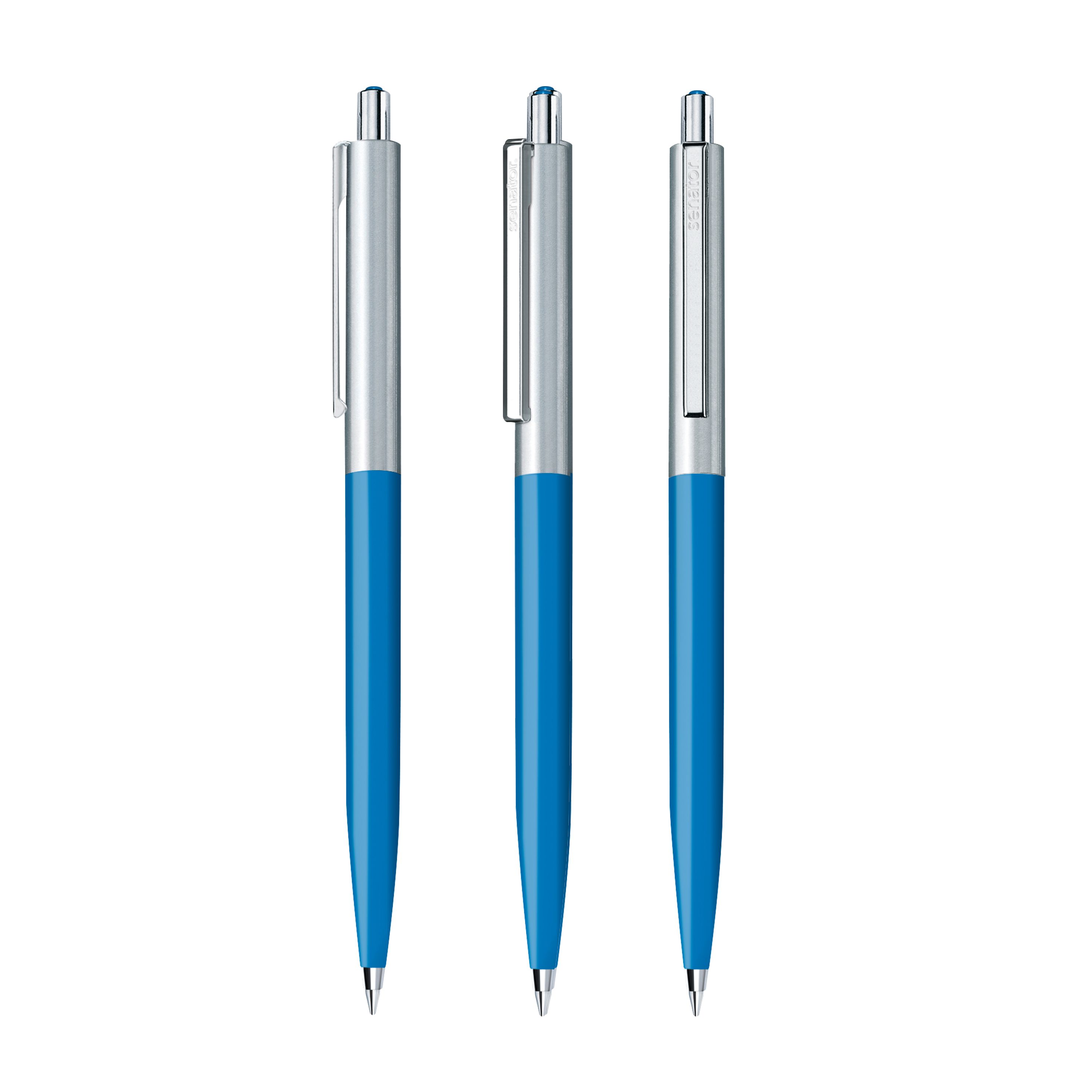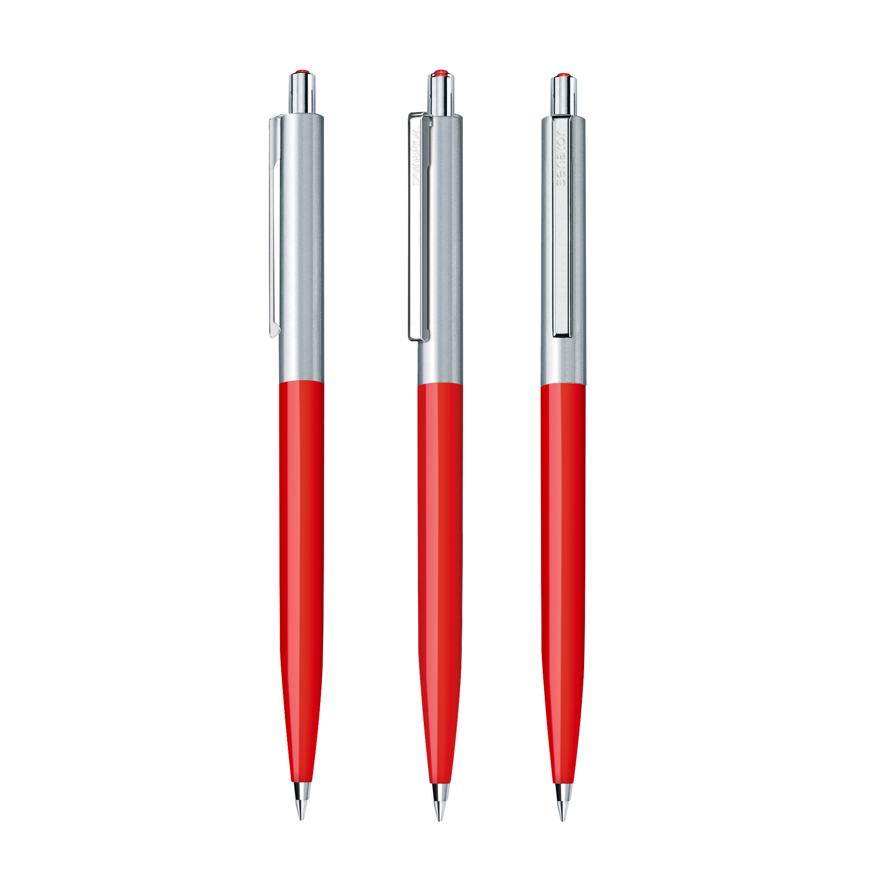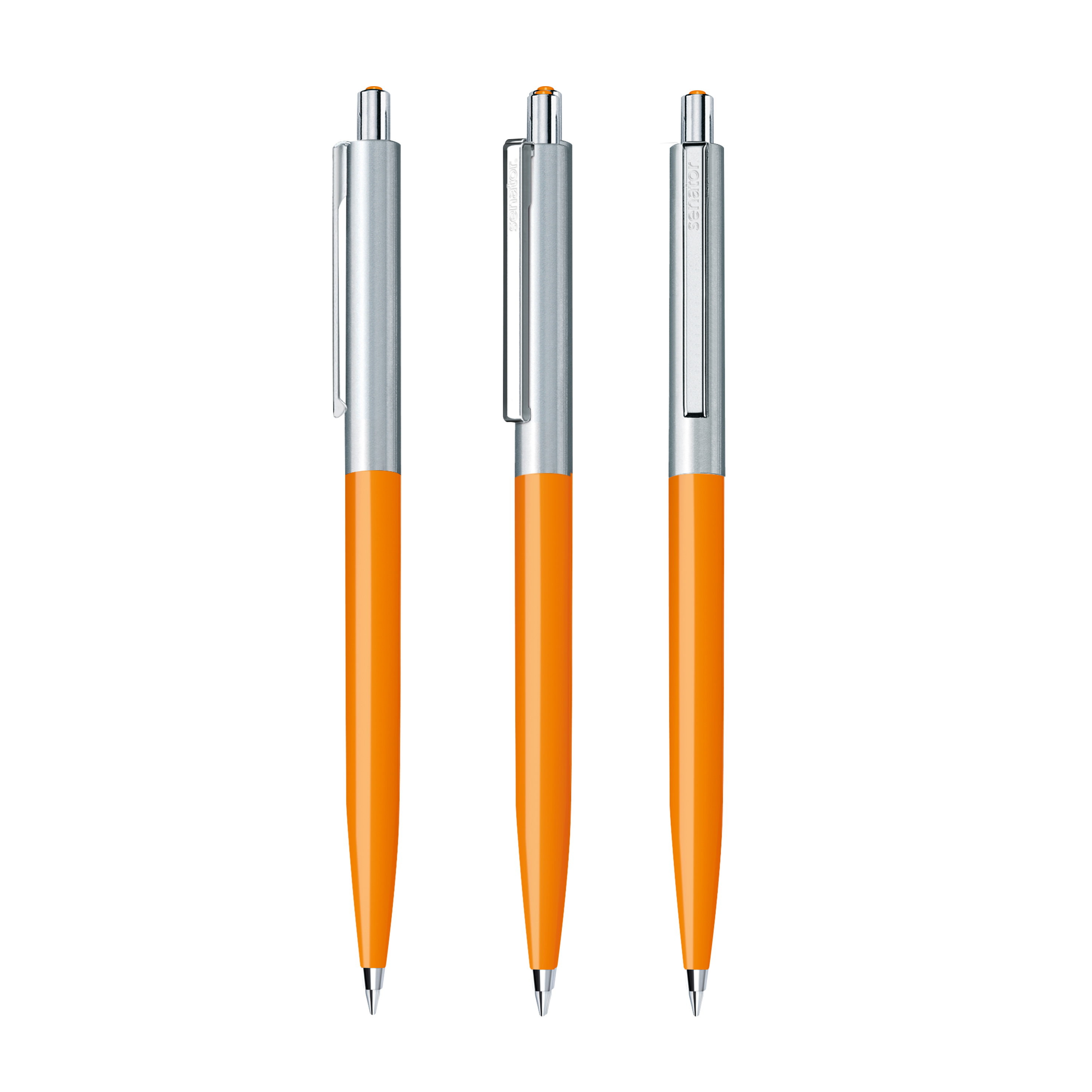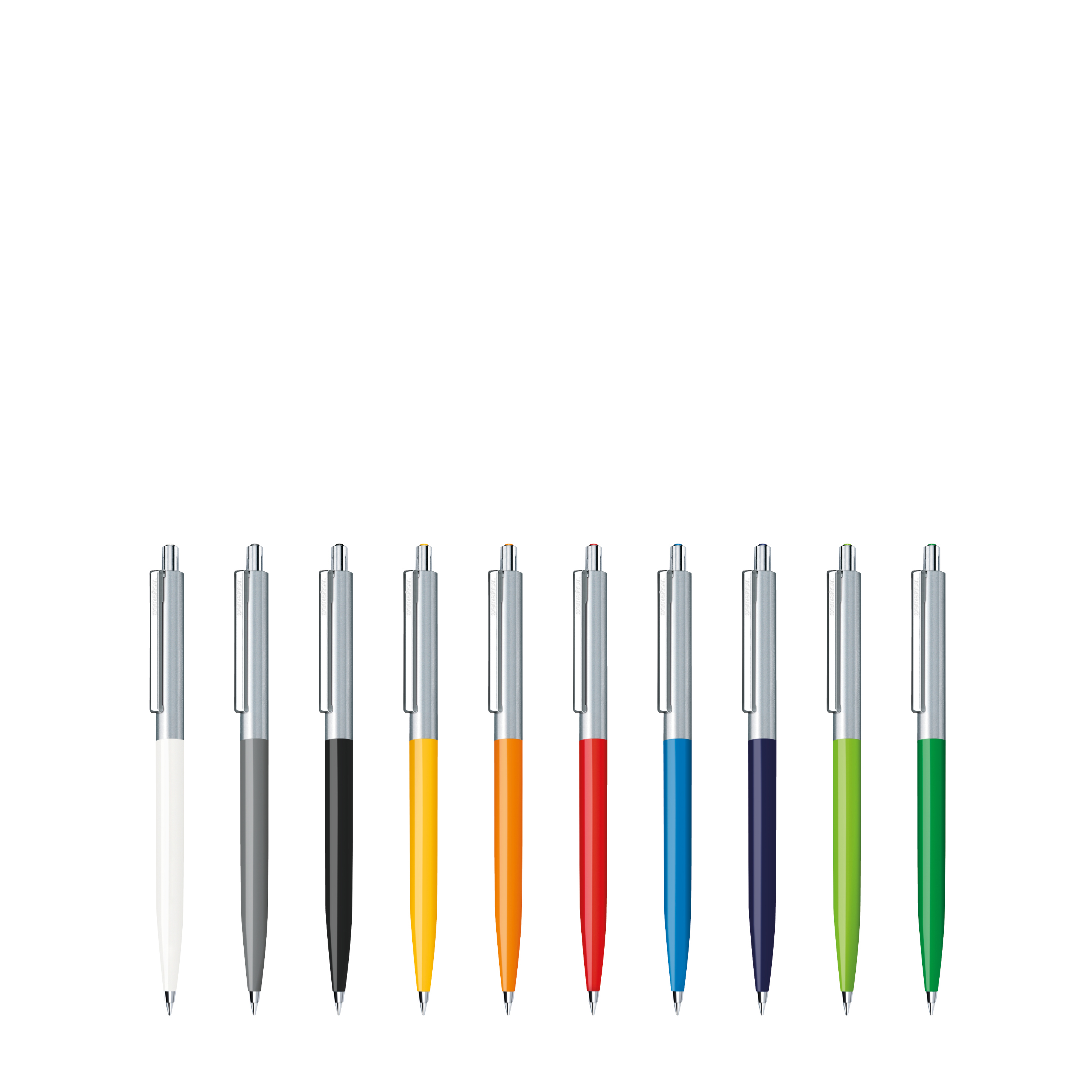 The Point metal pen combines a shiny opaque front section with a brushed stainless steel top section. Metal fittings and a decorative coloured dot in the the pusher round off the elegant appearance.