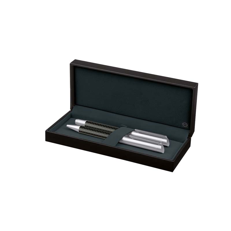 A twist biro and fountain pen personalised as an attractive writing set in a case. Supplied in a in ET160 presentation box.