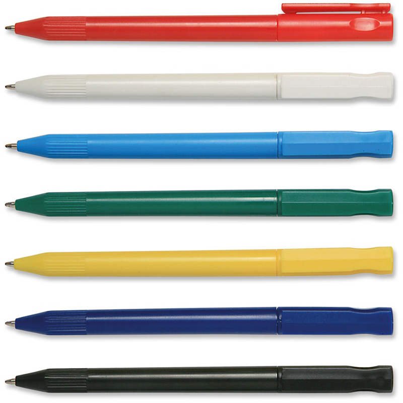 This twist-action budget pen is synonymous with quality and features a textured grip for comfortable writing. Available in a variety of solid colours, it’s a reliable choice for everyday use and promotional giveaways, combining affordability with a professional look.
