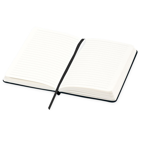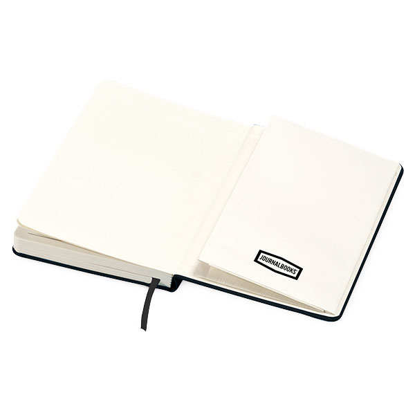 JournalBooksand#198; classic A5 office notebook. Grained hard cover notebook. Self coloured elastic closure band and ribbon marker. 80 sheets of cream lined 80gsm paper. Expandable accordion pocket on the inside back cover. Supplied with a JournalBooksand#198; card sleeve.