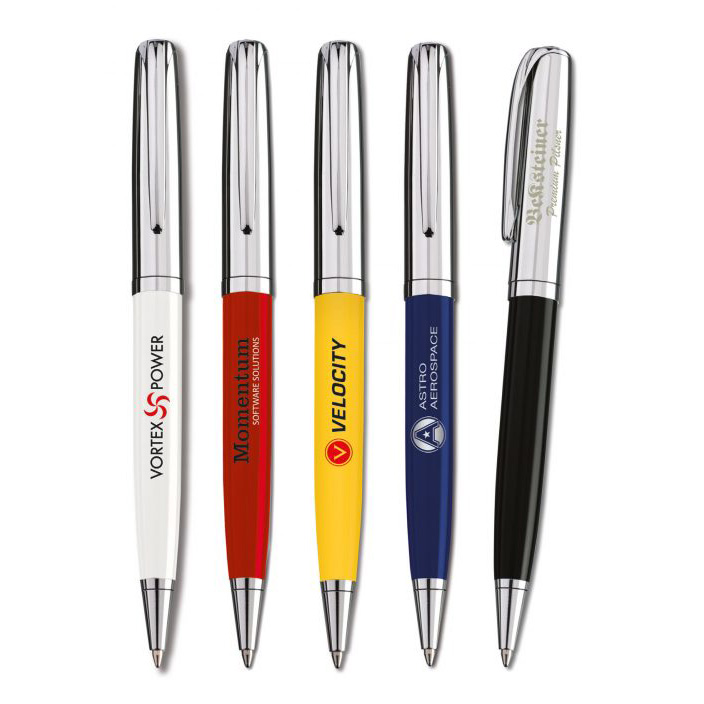 A highly popular and stylish twist action ballpen in a classic combination of lustrous gloss lacquer and bright chrome and a metal Parker Style black ink refill.