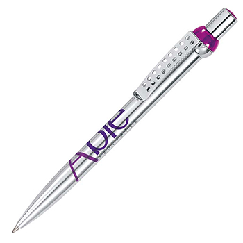 Sleek metal barrel ballpen with translucent trim in 3 popular colours.
