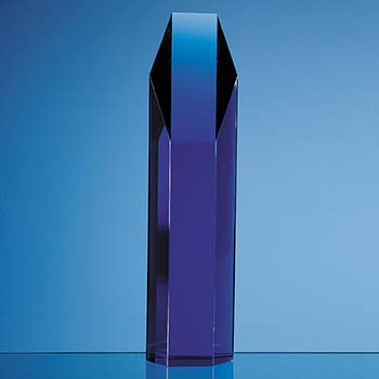 25.5cm Sapphire Blue Optical Crystal Hexagon Award