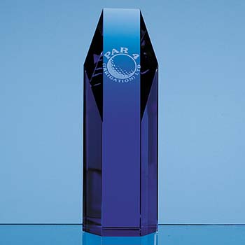 19cm Sapphire Blue Optical Crystal Hexagon Award