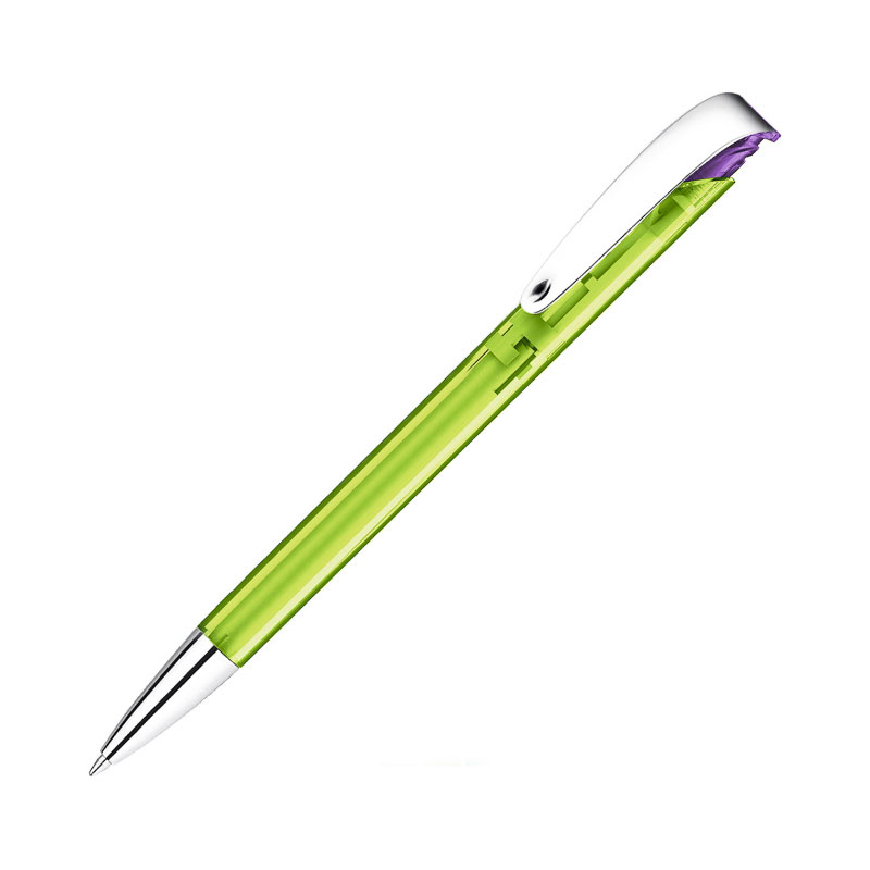 This much loved push action ball pen from Klio Eterna includes all transparent plastic parts, a metal nose cone and metal clip.