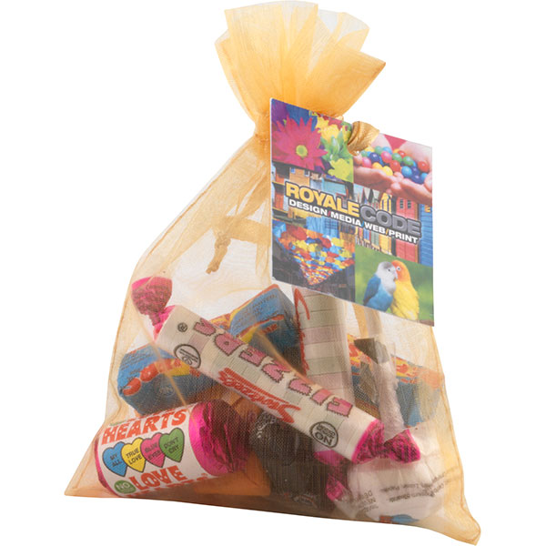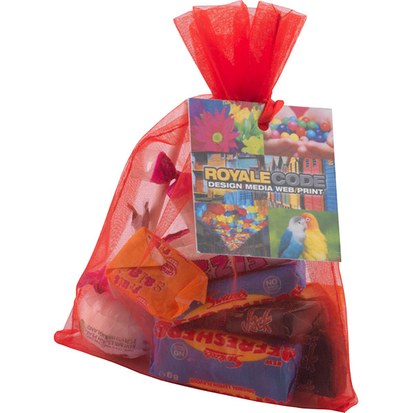 Organza bag with retro sweets. Large bag filled with retro sweets. Bulk packaged in 250 units