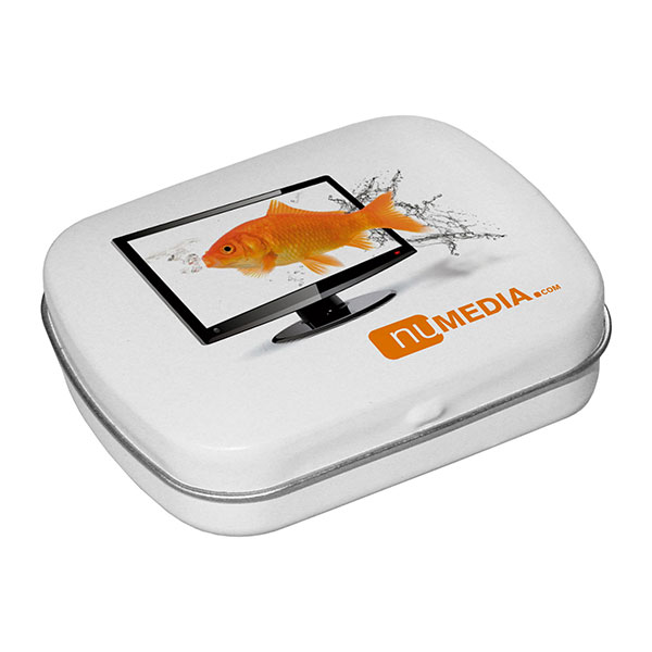 Star tin mints. Filled with approximately 16g of sugar free mints. In a hinged lid tin with security seal.