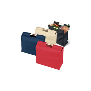 Quality 600d polyester shopping bag with wooden carrying handles.