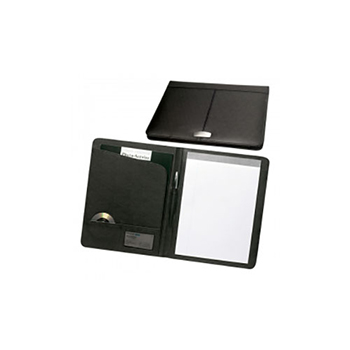 Black stitched leather conference folder with PU internal document pockets and a note pad. An excellent value product with a perceived high value.