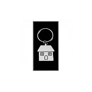 Polished chrome house shaped key ring with gloss black detail. Presented in a gift box.