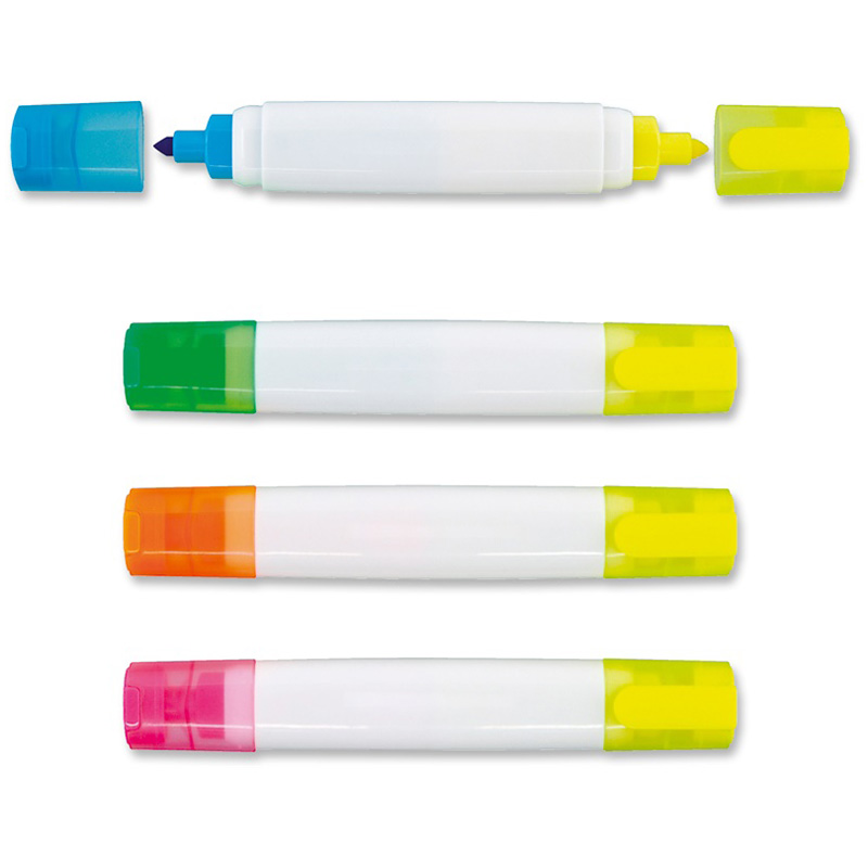 This great value double-ended highlighter features two different ink colours, offering 2 for the price of 1! With an excellent print area on the white barrel, it’s perfect for branding and promotional use.