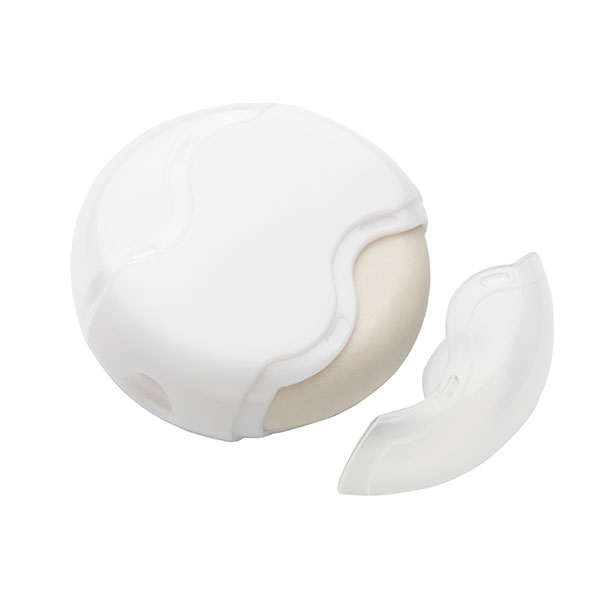 Era sharpener and eraser. Solid white with transparent eraser cap.