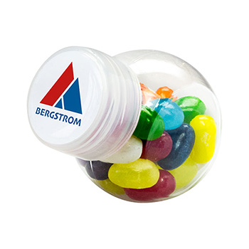 Dinky mini pot. Clear pot with a White / transparent screw cap. Contains approximately 30g of high quality beans.. Filled with your choice of over 50 available flavours Country of origin: China.