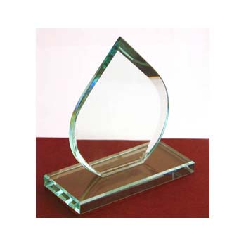 15cm Single facet jade green tear award 125mm high supplied in a satin lined gift box