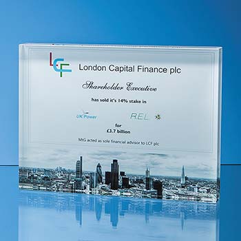 15cm x 20cm Optical Crystal Rectangle Award, H or V