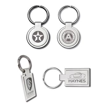 Rectangular Classic Keyring with a standard split ring fitting. Laser engraved in one position and supplied in a silver card gift box.