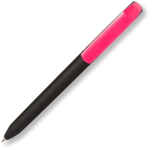 This pen features twist action mechanism and soft feel material barrels. Made in Italy, these personalised pens are available in black with a wide variety of colours for the clip, to which your brand can be printed. Ideal for any promotion.