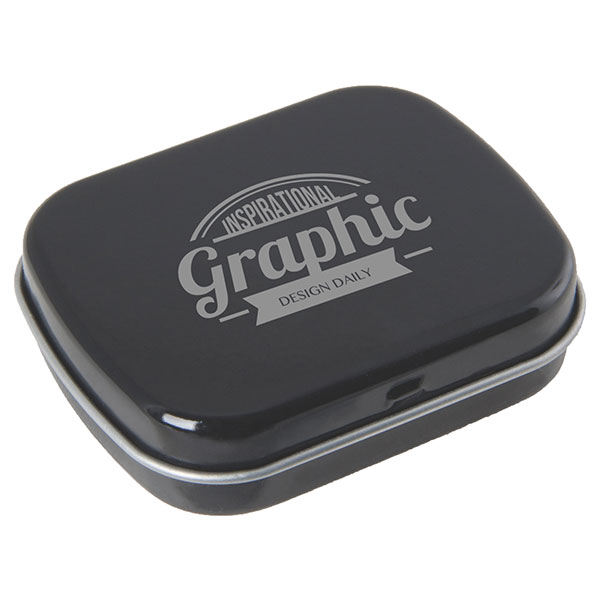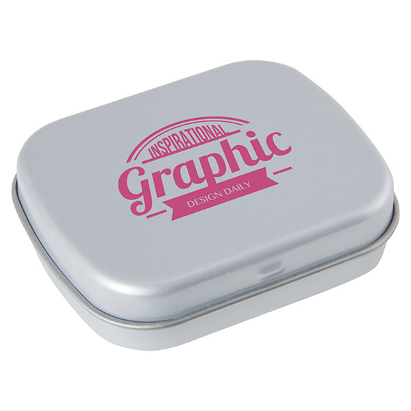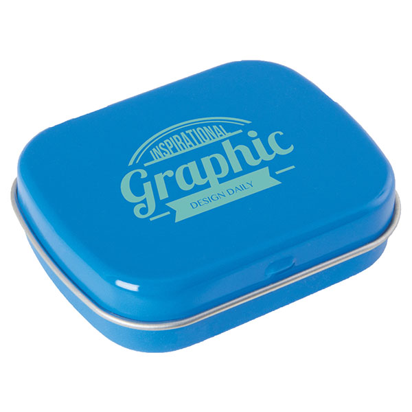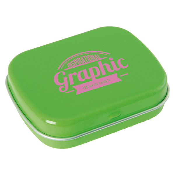 Flat mint tin. Filled with approximately 25g of standard dextrose mints. Tamper proof seal. Can also be filled with extra strong dextrose mints or Choco mix (in several colours). Bulk packed. Carton - 500. Pallet - 16,000.