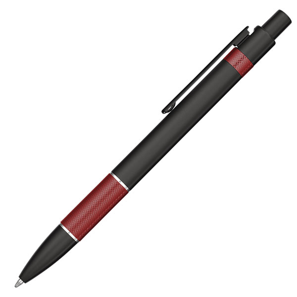 Contrast ballpen. Push action. Black enamel barrel. Metallic coloured grip and trim. Ink colour: Black.