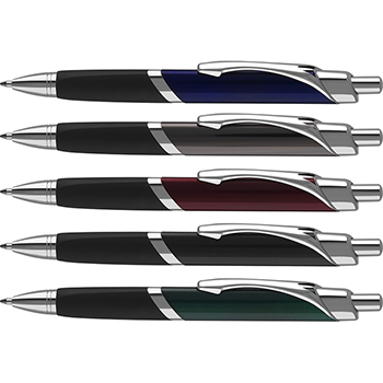 Aluminium push-button ballpen with unique triangular barrel for larger branding areas. Choose from a selection of traditional colours. The black rubberised grip feels comfortable to use while the chrome trim adds an appealing touch.