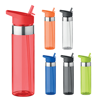 Transparent 650ml drinking sports bottle with foldable mouthpiece and built in straw for convenience. BPA free plastic with a stainless-steel detail and a screw top closure. Great for commuters or health focused students at the gym or outdoors.