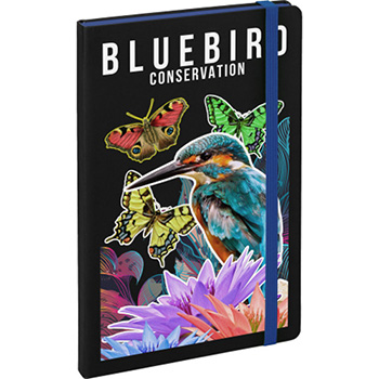 Hard-cover notebook in black with colour matching paper edges and elastic closure. Internal booklet comprises of 192 pages of lined white 80gsm paper and is completed with an integrated ribbon bookmark.