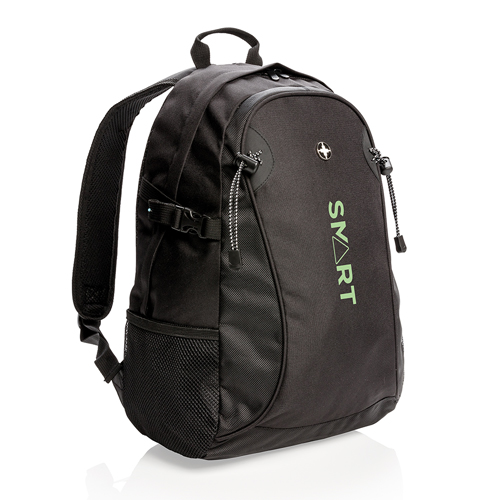 600D and 1680D polyester outdoor backpack with one large main compartment. Comfortable padded backpanel. Side mesh pockets can hold a water bottle or extra gear. PVC free.