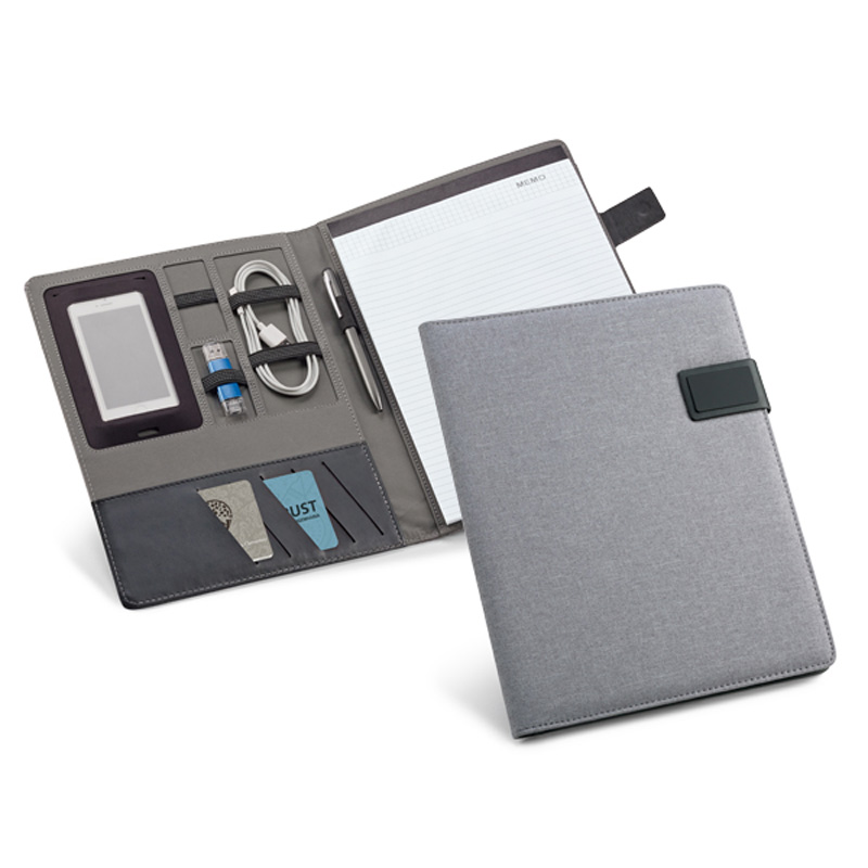 A4 Imitation linen folder with magnetic lock. Supplied with a notepad.