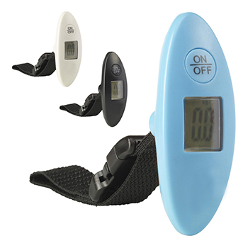 Portable digital luggage scale with digital display screen with nylon cord and buckle carry strap. Display shown in kg and lb up to 40 kg/88 lb. The display switches off automatically. Battery included.