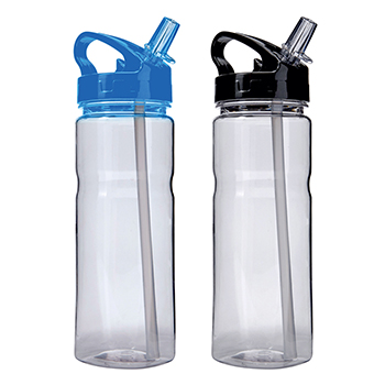 550ml plastic water bottle with screw top lid and drinking straw. Features a sturdy carry hook.