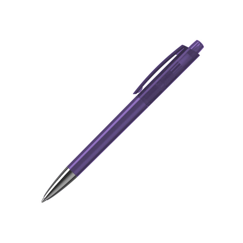 A retractable ball pen from Klio Eterna that includes translucent plastic parts and a metal nose cone. Made in Germany using climate-neutral production and 100% green electricity. 20% of the plastic used to produce this product is made from recycled ABS plastic. This promotional pen is made to order and you can customise the individual parts of the pen. You can pick between a wide range of 13 different standard colours and from 5000pcs you can even pantone match the whole pen. This push action ball pen is sure to stand out, not only with your colour combinations, but also the sleek and precise design will catch the attention of anyone. Supplied with a quality Silktech refill, made of recycled PP material, that is guaranteed to have a writing length of 3000m and can be supplied in blue or black ink. A combination of precise design and engineering oozes quality and ensures a writing experience like no other. Product can be printed upto 4 spot colours to the barrel.