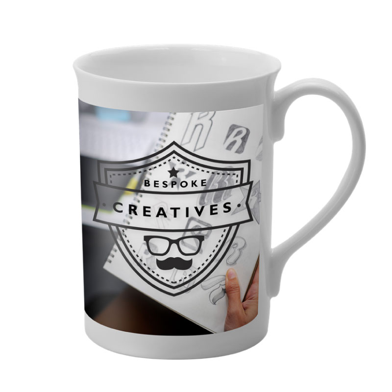 Dye sublimated mug. Elegant bone china.
