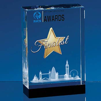 12cm x 8cm x 4.5cm Optical Crystal Rectangle with Onyx Black Base