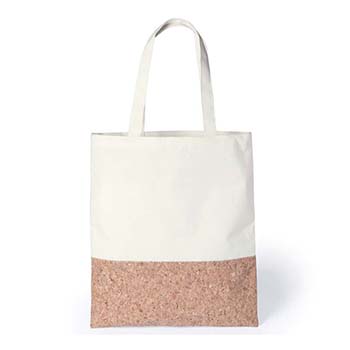 Shopping tote bag with long handles for easy carrying. The lower half of the bag is made with cork and the upper half made with cotton. The perfect accessory for grocery shopping.
