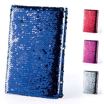 Interactive A5 sequin notepad in eye-catching metallic colours, with a hard cover and 80 sheets of plain paper. When sliding your finger on the surface the sequins change between the two-toned colours.